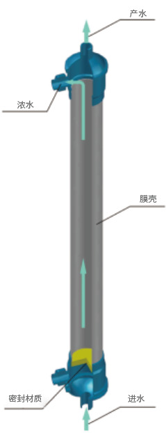 為了便于工業化生產和安裝,提高膜的工作效率,實現單位體積最大的膜面積,通常將膜以某種形式組裝在一個基本單元裝置中,混合溶液中的組分在一定的驅動力下被分離,這種裝置叫膜組件,超濾膜組件的結構設計是連接膜絲特點和操作參數的中間紐帶。通量大、精度高、截留高、抗污染性強、膜絲強度高、易清洗,易恢復,使用壽命長。